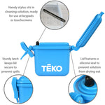 - The flip-top ensures the cleaning solution stays inside the TĒKO and doesn’t spill out into your pocket or purse. It also ensures long life for the cleaning solution and doesn’t dry out from being exposed to air.