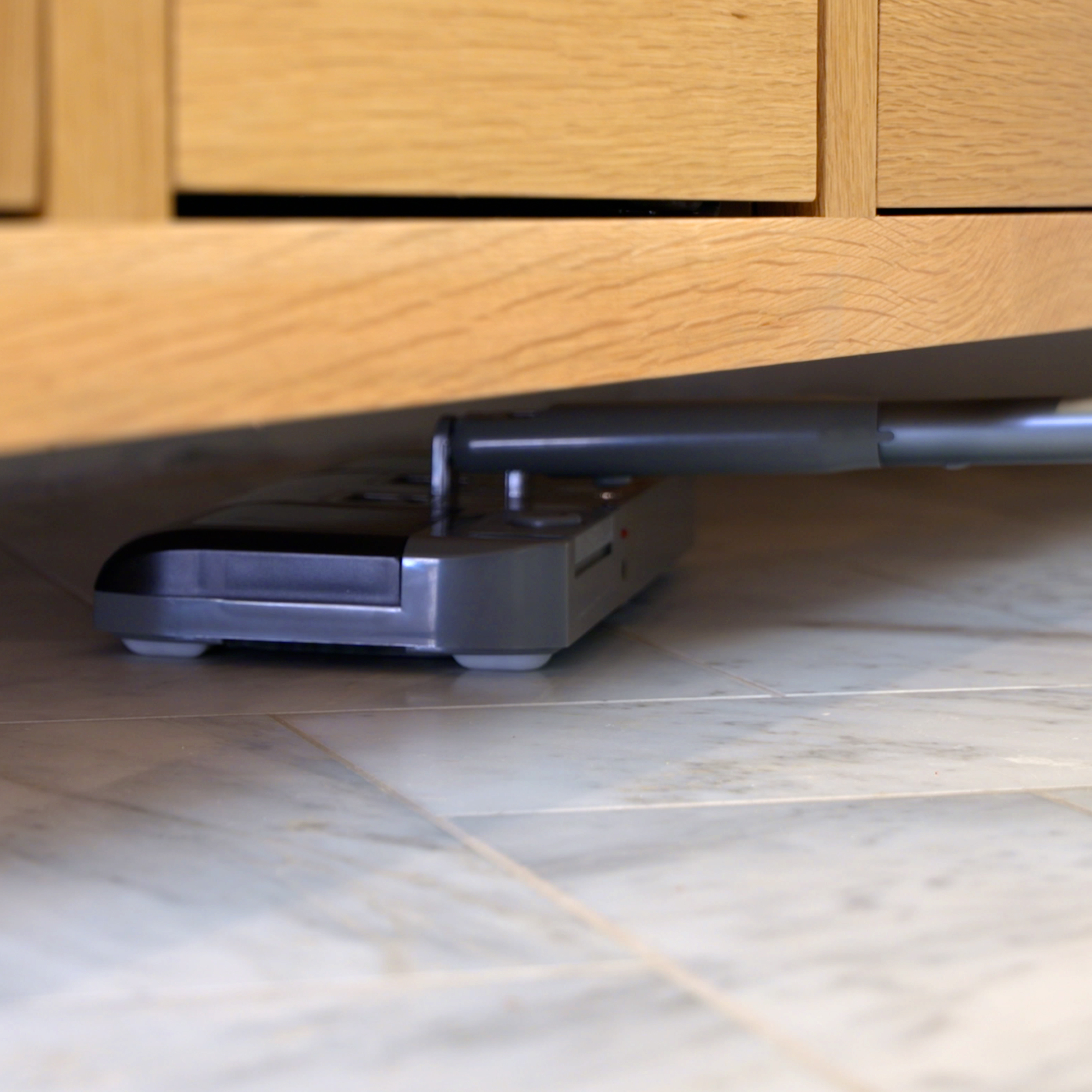 - Gets under low profile furniture - lays flat for reaching under coffee tables, sofas, armchairs etc.